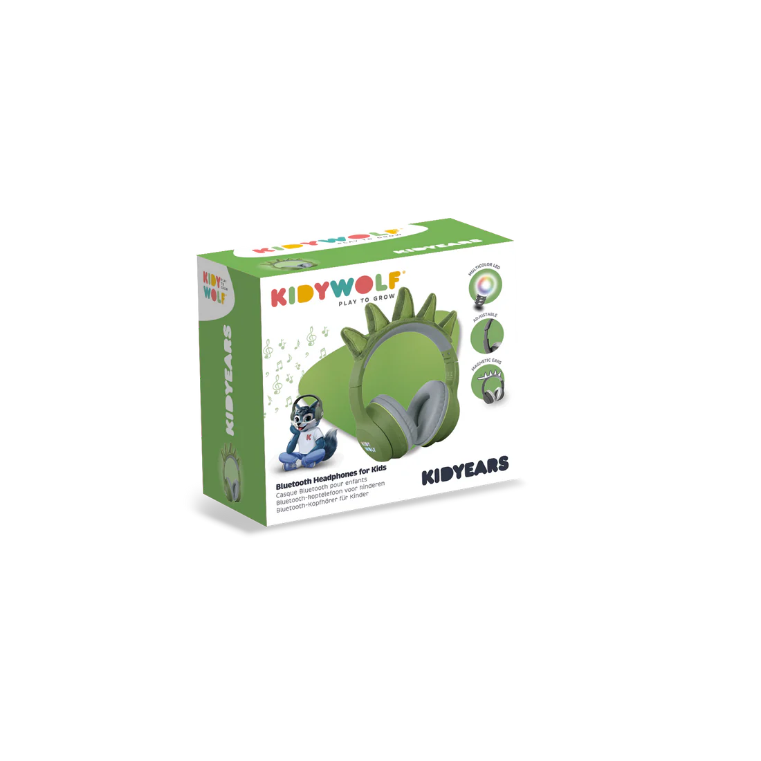 KIDYEARS is the must-have headset for little dinosaur fans! With its fun design and magnetic ear cups, it delivers clear sound while protecting hearing thanks to a volume limited to 85 dB. Lightweight, comfortable, and hybrid (wired or Bluetooth), it accompanies children in all their activities: games, movies, music, or travel.