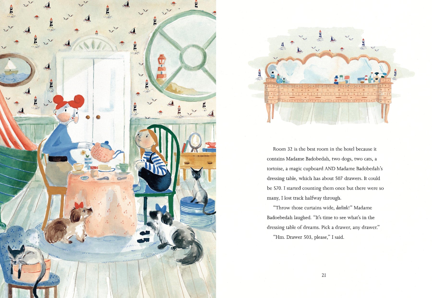 Mabel lives with her parents by the sea in The Mermaid Hotel. Mabel likes to keep an eye on the comings and goings of all the guests - particularly Madame Badobedah, her best friend. Madame Badobedah has pirouetted through pyramids, skated across rivers, swum with mermaids and even helped a Triceratops with a toothache. In this adventure, the duo set off on a mission to the Natural History Museum. And on the way, just maybe, they might meet a dinosaur…