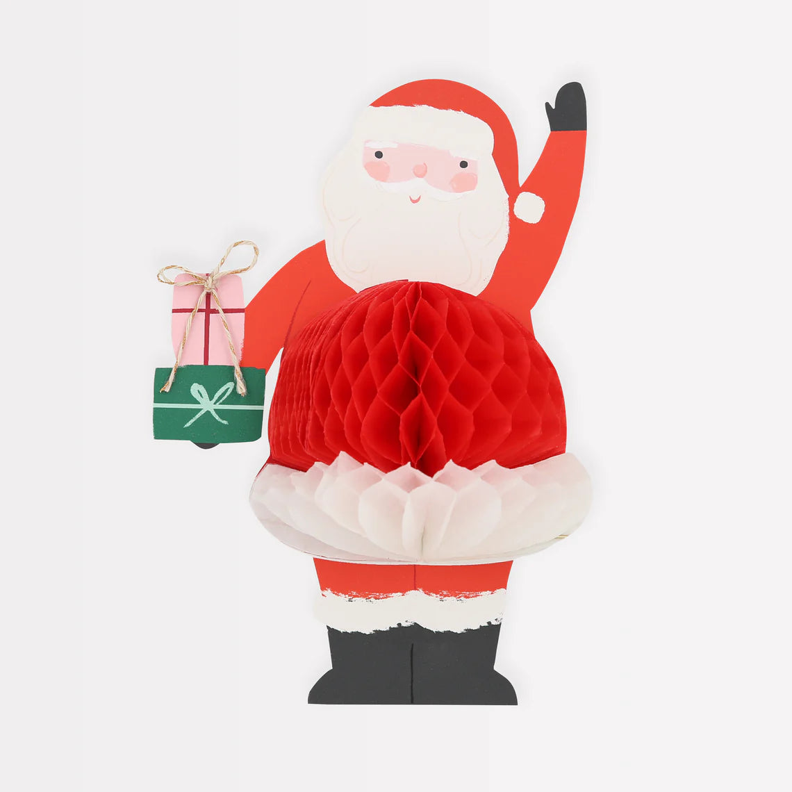 Santa is so happy to see you – and we just know you'll be delighted to see him too, especially with his bright cheery smile and the lovely gifts he is holding! The fabulous 3D honeycomb effect on his tummy, and the twine bow on the gift, make this a very special card and Christmas decoration.