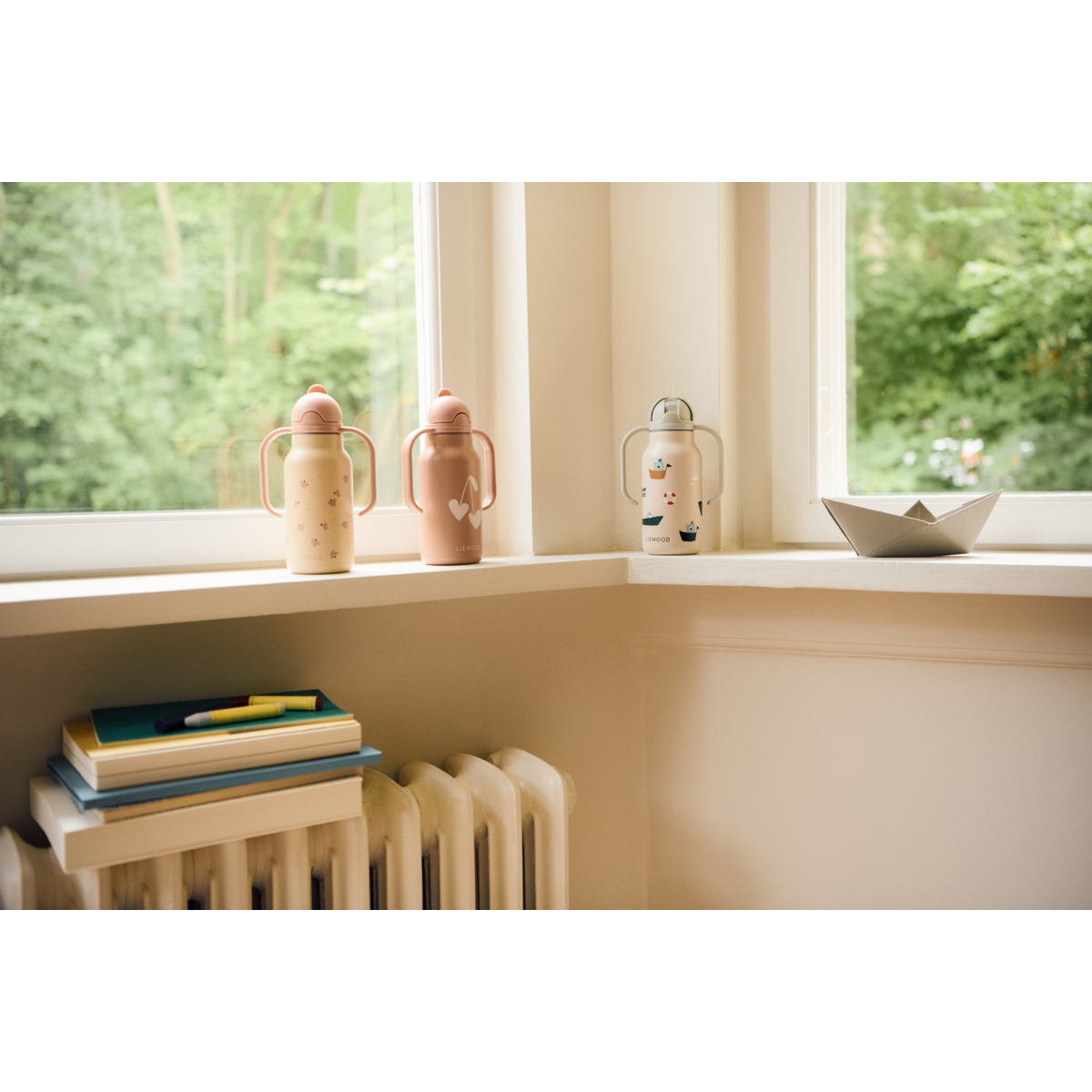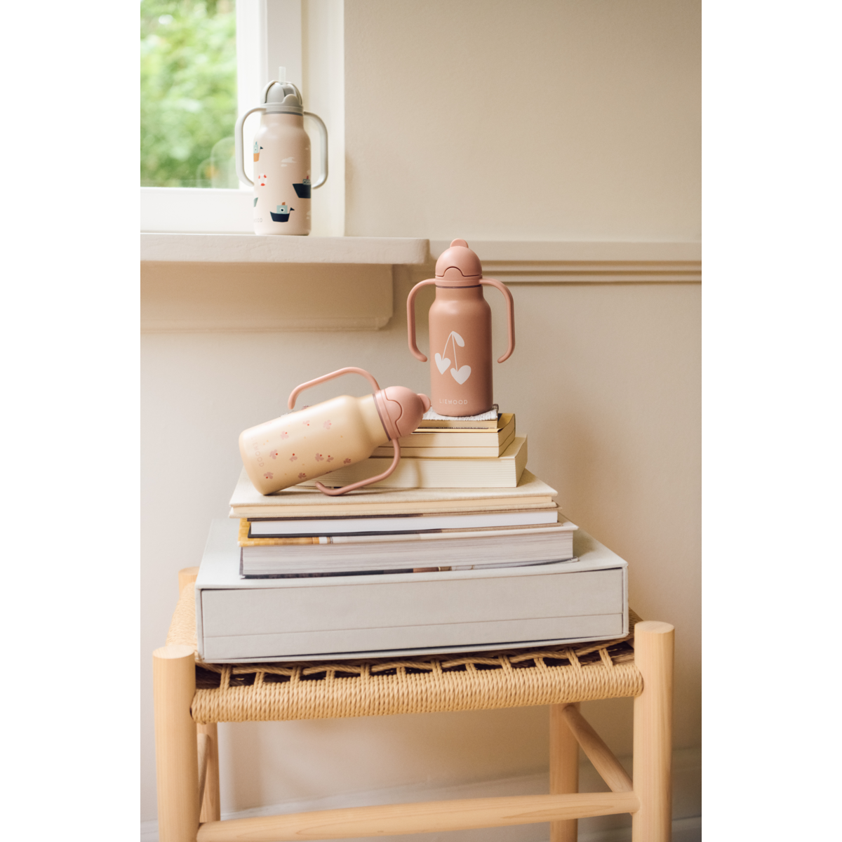 Innovative and toddler-friendly, the KIMMIE water bottle has two easy handles on the lid, a built-in straw and is made of 80% recycled premium stainless steel. It is designed to be easy for little hands to handle when learning to tilt and drink water on their own.