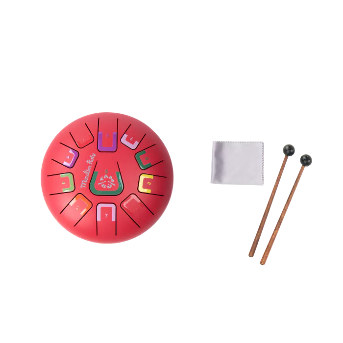 A real musical instrument to introduce children to percussion! This tongue drum has 11 notes indicated by a color and a number. There are different ways to play: with your fingertips, your hands or using the included sticks. The drum comes with a melody booklet.