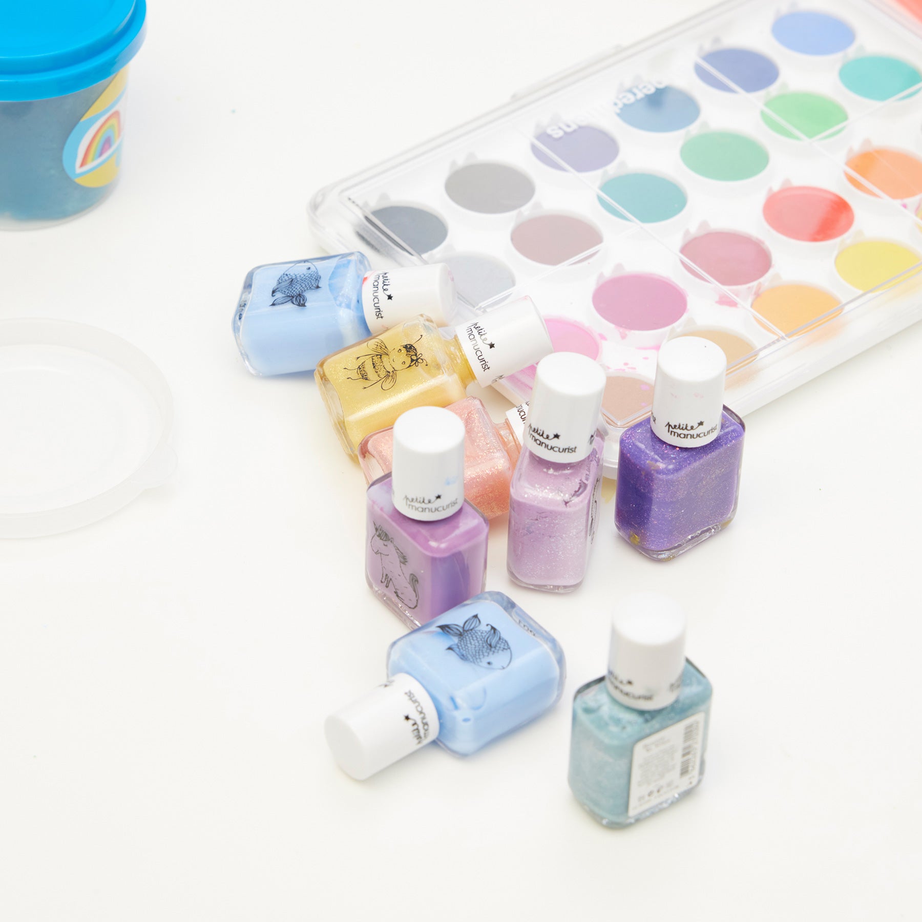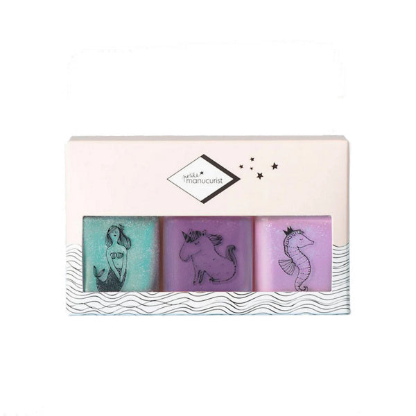 Regular price €27.00A kids' nail polish set comprised of a glitter blue, a glitter mauve and a glitter purple. Petite Manucurist polishes have such a pure formula that kids can use them safely and remove them with soapy water. No risk of staining. If the varnish spills on clothing or fabric, wash immediately with water.