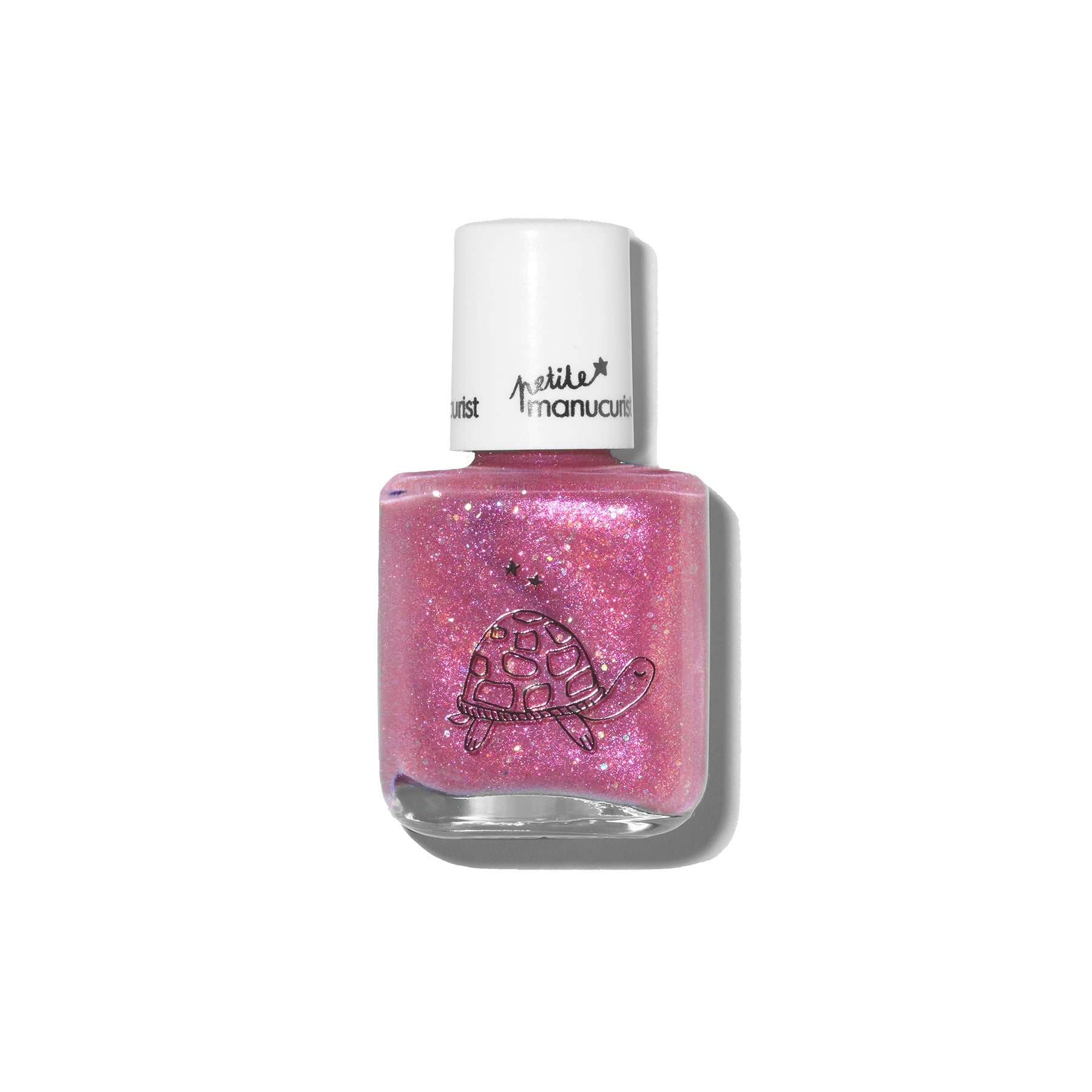 A raspberry glitter pink kids' polish that can be removed with soapy water.