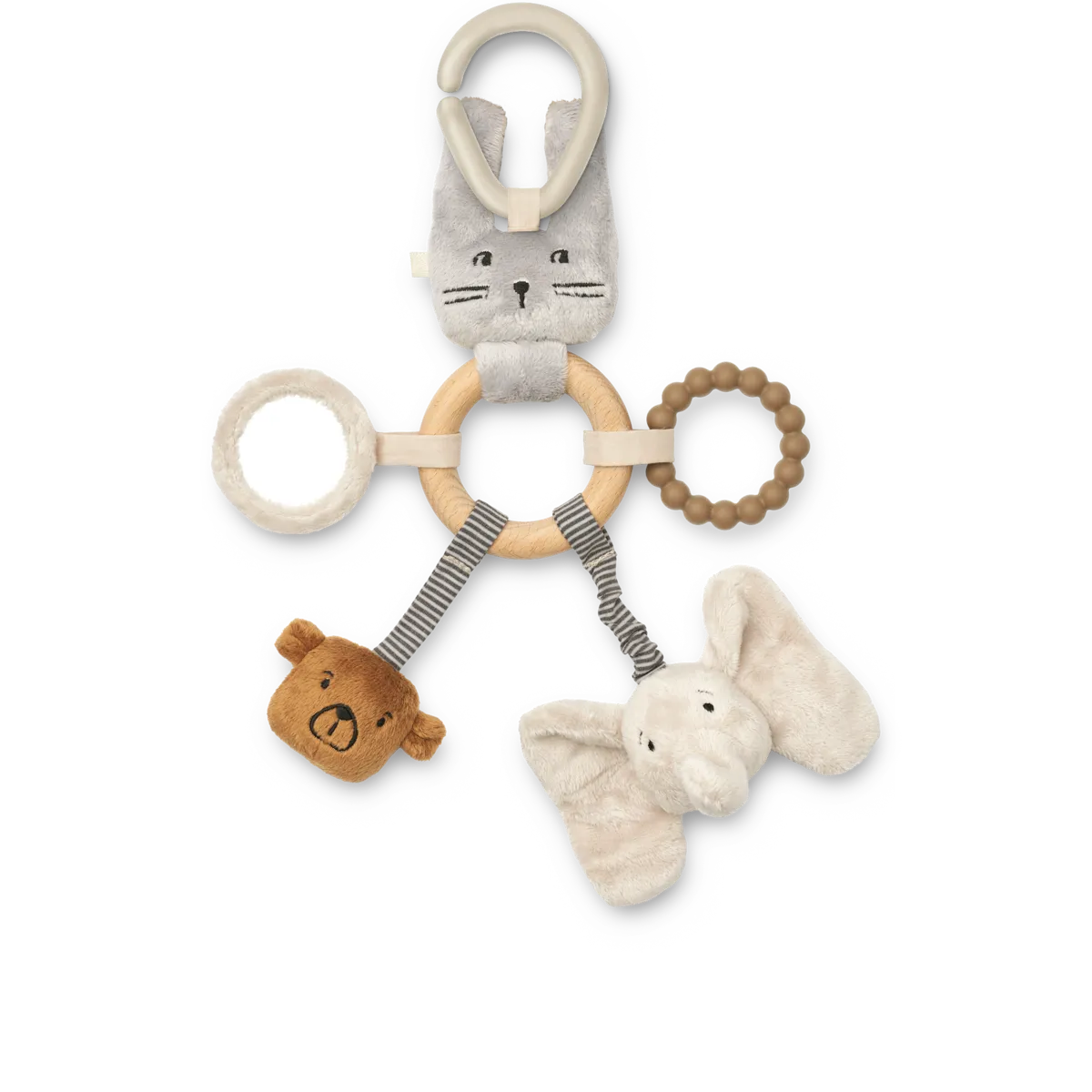 Angie Activity Toy comes in different Liewood signature colours, shapes and textures. It is great for sensory baby play and entertainment - keep your baby occupied when on the go! Hang on to playgym, in the stroller or wherever needed.