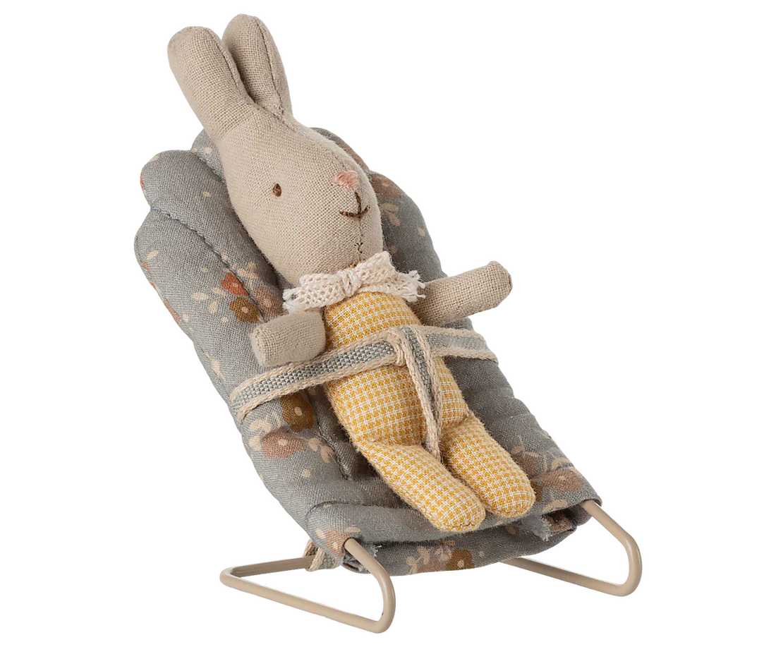 With this babysitter, it is easy to put your little friends to sleep. The base is made of metal and covered by the most lovely fabric. The chair fits my sized rabbits/bunnies and baby mice perfectly.