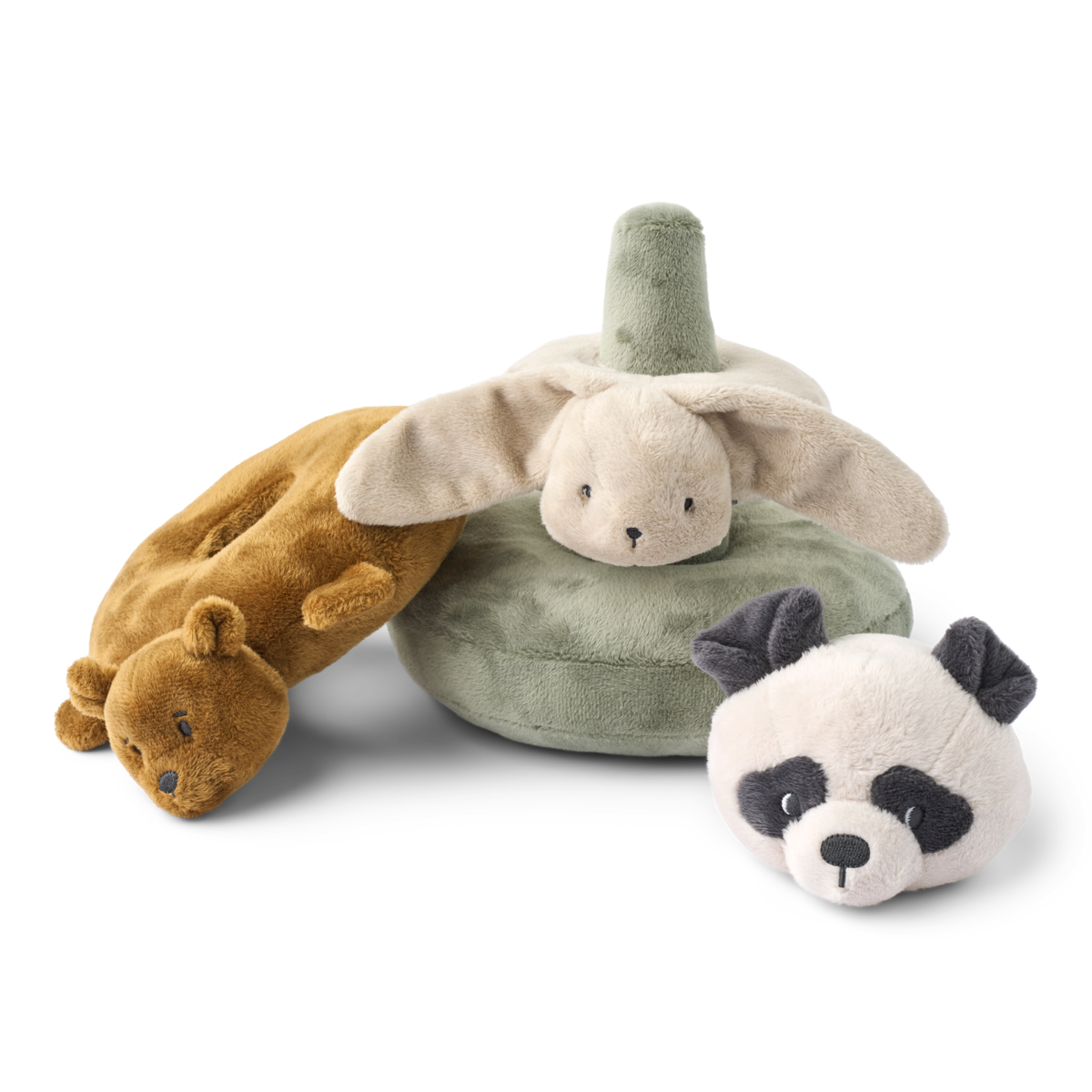 • Soft plush stacking tower set in playful animal shapes