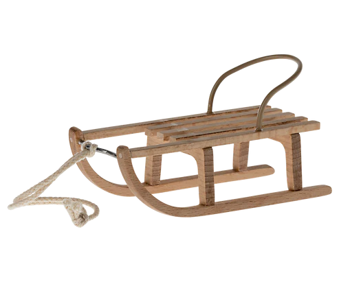 This wooden sled is the perfect accessory during wintertime when the snow is falling. It fits the smaller mice perfectly in size. Keep the string attached, so it is easy to pull the sled around in the snow.