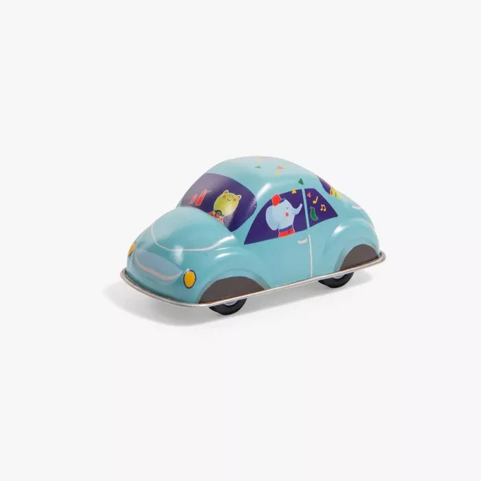 Little metal car, illustrated with a marching band on its way to a concert! Rub the car back and forth, applying light pressure, then let go... and it'll speed off!