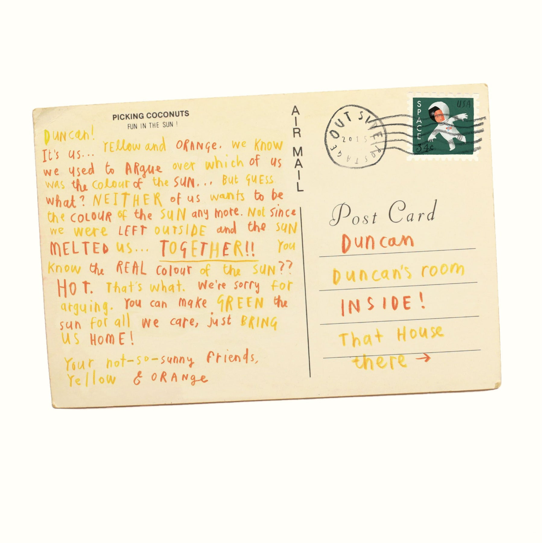 The crayons are back - and they’re crosser than ever. One day Duncan receives a set of postcards from his crayons who have been lost, forgotten, broken, or melted in a clothes dryer and stuck to a sock