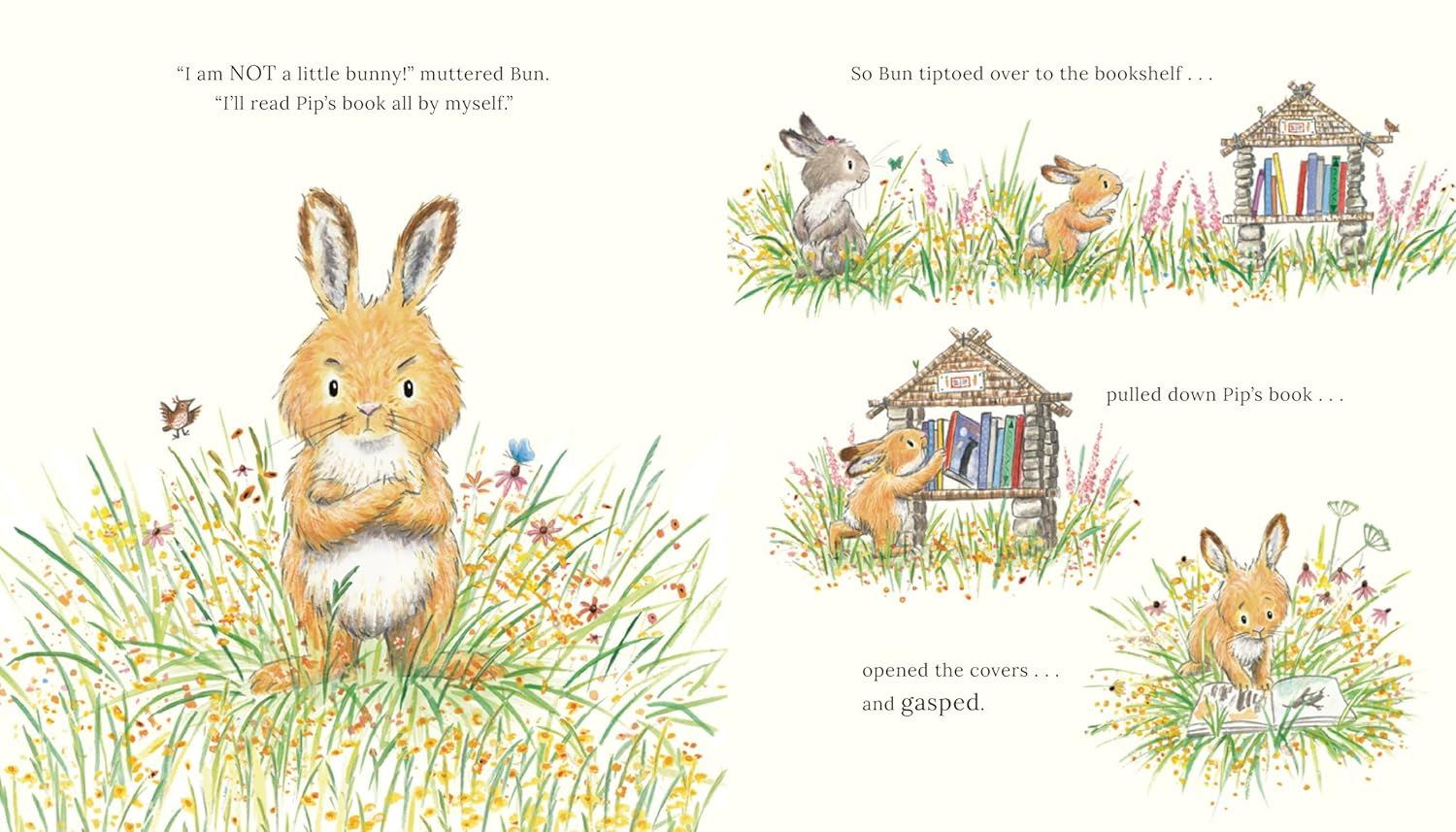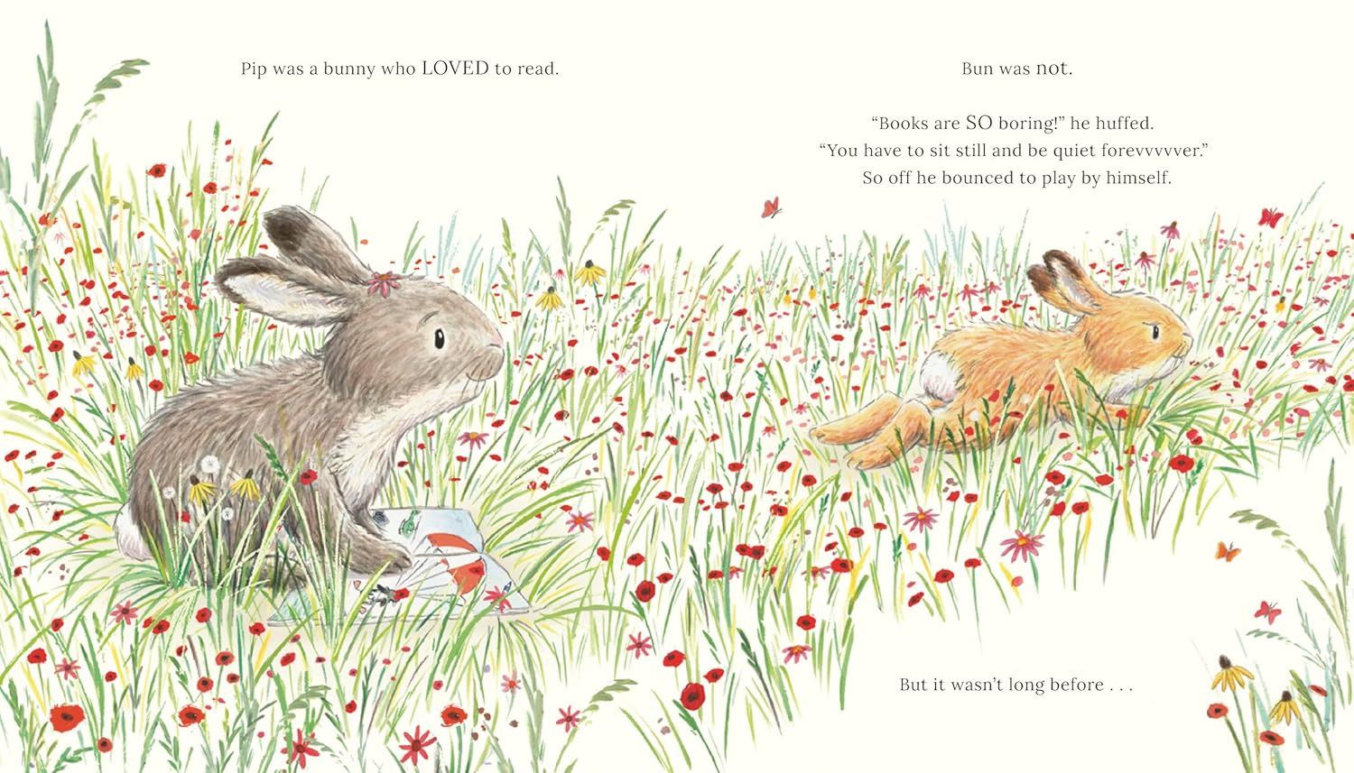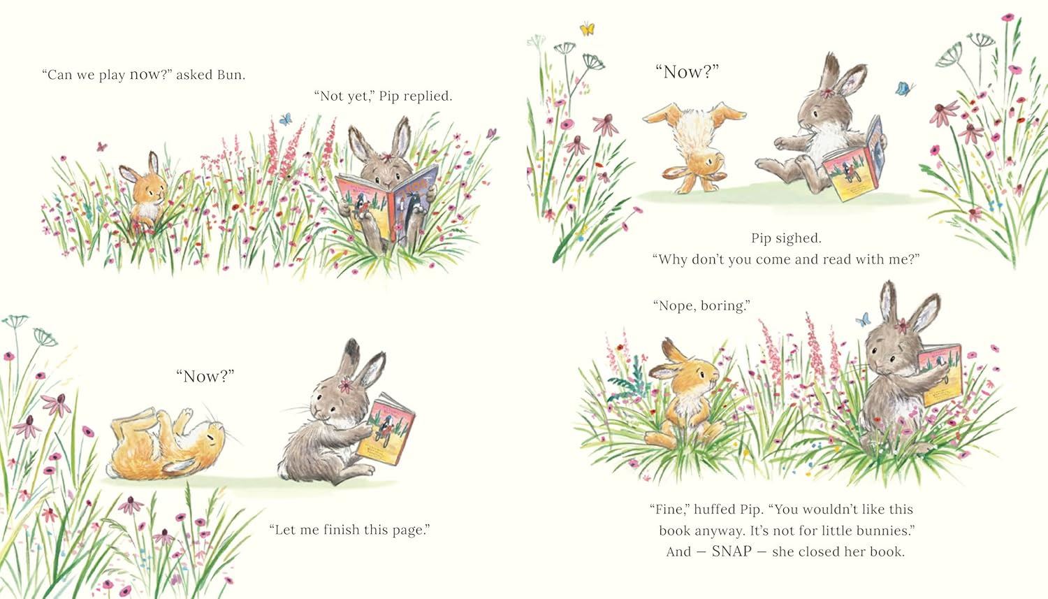 Pip and Bun are two very different bunnies. Pip LOVES reading. Bun does not. "Books are SO boring!" Bun says. One day, Pip is happily reading her book while Bun impatiently waits to play with her. Then Bun stumbles upon a book filled with action and adventure. Could it be the perfect way for the little rabbit to learn to enjoy reading? A story which celebrates imaginative play and encourages reluctant readers to see that there are different ways to enjoy books – you just need to find the one that works for you.